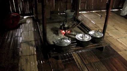 ノイ先生の囲炉裏は炊事をしたり食事をしたり、談笑や織りや刺繍などをするところ。この家は内も外もいつもきれいに片付け・掃除されていた。