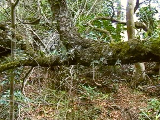 この商店からゆるやかな峠道を300mも登って行くと右手に沢が見られるようになり、その沢筋に植えられた梅の老木の沢に張り出した枝にカヤランがたくさん着生しているのが見られる。その先の沢筋の峠道の周りの樹木を観察すれば、思いのほか人里の中にも自然状態のカヤランが残っているのが見て取れ、なんだかとてもうれしくなる。