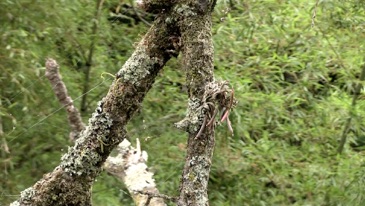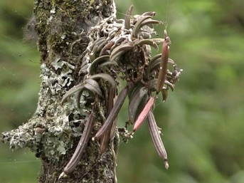 2018.07.04 これは2003年に撮影したのと同じ木に着生していたカヤラン。花はとうに終わり、種を孕んだ莢が元気さをアピールしていた。