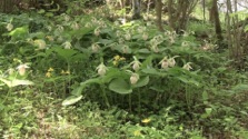 2013.05.15 正丸峠 個人宅 :昨年(上段)花を見損なったので、今年は何としてでも勇姿を見届けたいと考えていた。連休明け頃から数回このお宅に電話をしたのだが一向につながらない。この日も出がけにも、お宅の下の駐車場に着いてからも電話をしたのだがやはりつながらない。途中で買ったおやつを片手に玄関まで行ってベルを押したが誰も出て来ないし犬もいない。期待を込めて裏庭に回り込んだがやはり人の気配がない。ふと見ると、昨年、葉っぱだけになっていたクマガイソウの畑に白いものが見えた。