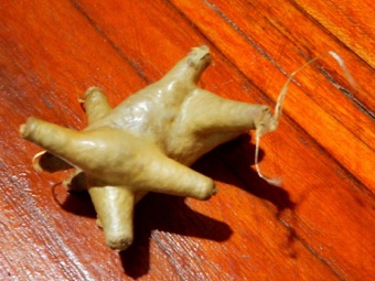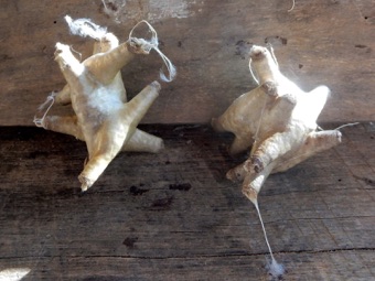クライソン氏が「キャタピラー」、「7つのキャタピーラー」といって持ってきてくれた。何かのガの繭らしい。いくつかの繭が一つの固まりになっている様子。でも最終的には誰が糸を吐き出して固まりにするのだろうか、固まりにした後に自分用のキャタピラーの中に入り込むのだろうか。不思議の固まり。