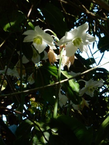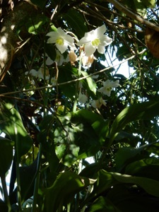 BMHHの村人の庭木の日陰でひっそりとそして妖艶に咲いていた。かなり背の高い花で、逆光に輝く様を、見上げるような位置見たので、より幻想的に、妖艶に感じたのかも知れない。