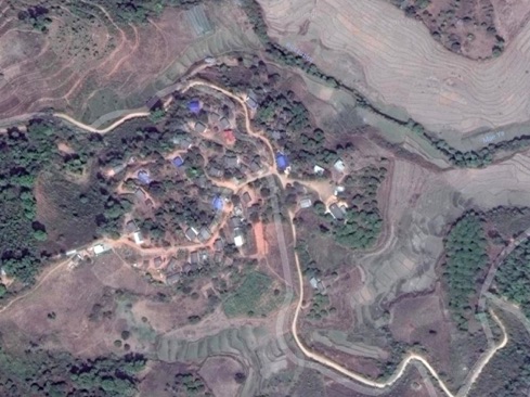 標高約1,000m、戸数約40戸、人口100人弱、多くは白カレン族、キリスト教信者が多いが仏教や伝統的な精霊信仰も共存。住居は稜線に沿って建てられている。(日本的な感覚では下から上へだが、ここでは上から稜線伝いに下って来たというのが実態のようだ)