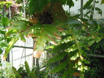 このシダは始めは良かったのだが、我が家の狭い温室には大きすぎた。また余程繁殖力が強いのか、知らない間に色々な鉢からこのシダの芽が生えてくるのには驚いた。