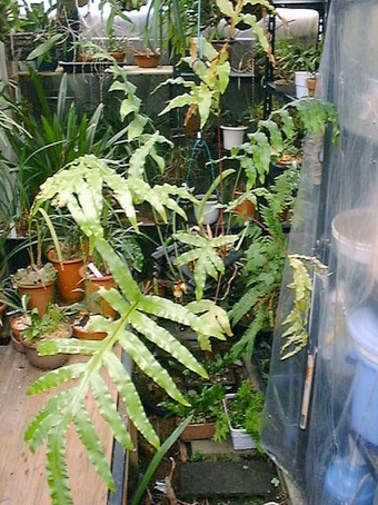 そこの温室でこのシダを栽培していた訳ではない。たまたま海外から購入したランに胞子か根がついていて、それが、その温室で増殖したというもの。当方はその温室ではランよりも、このシダの方が気に入って分けてもらった。