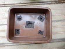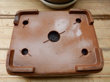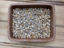 上の水盤からそっくり、一回り大きい平鉢に移し替えた。用土は軽石と鹿沼土と赤玉。急に乾かないように水苔を被せて保湿している。半年もすると見違えるほど大きくなると思う。