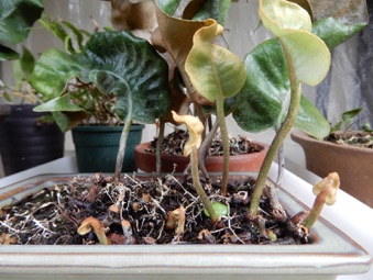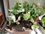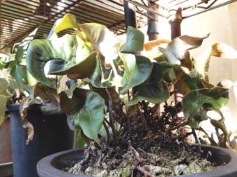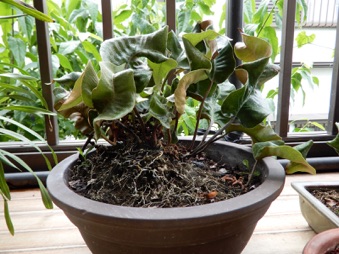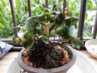 ※新芽の伸びる方向に余地ができるよう水苔を詰めて株を中央へ