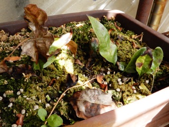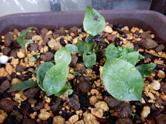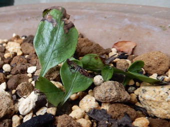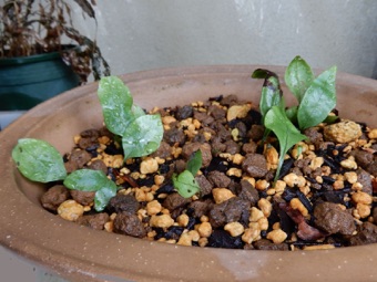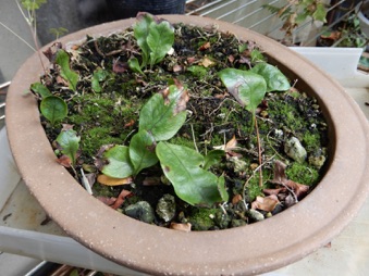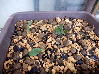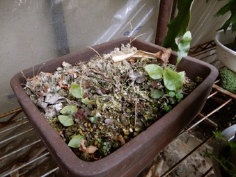 今回は水苔で過保護にせず赤玉、鹿沼、腐葉土の混合のみで様子見。株の状況次第では水苔を追加して保湿する。