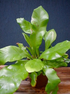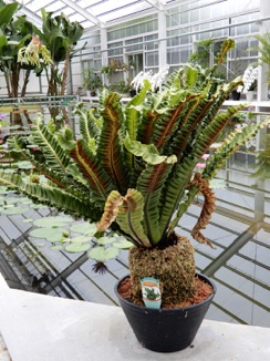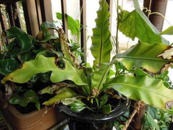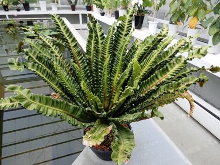 左の大きなオオタニワタリは江東区夢の島のゴミ焼却場の熱を利用して作られた熱帯植物園温室の中である。右の写真は自宅で育てていたオオタニワタリ。園芸店で苗を買ったものだが長生きしなかった。