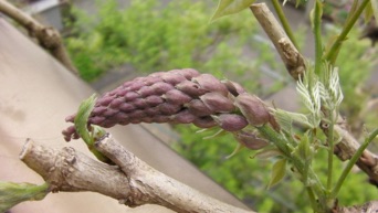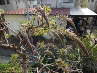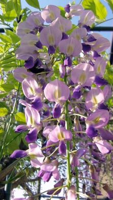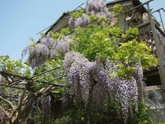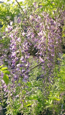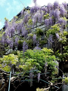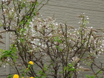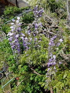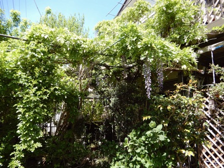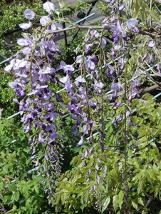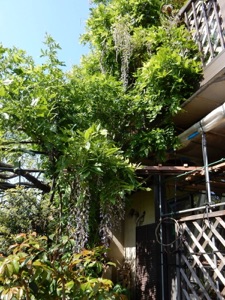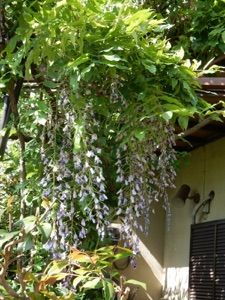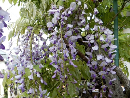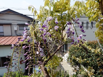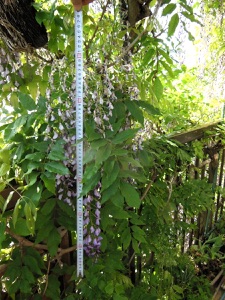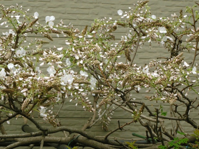 2013.04.18 自宅 :上は4/13、下は4/18約1週間の差で花房がかなり長くなっている。今年は花付きがかなり良かった。手入れも、天候も左右しているだろうが、周期も関係していると思う。木の勢いそのものは2Fベランダに移行している。