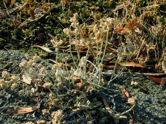 2000.09.23 ホテルとなりの荒れ地と湾を隔てる道路の境で撮影したもの。もう花は終わって種の状態になっているがハハコグサの姿は留めていたので撮影した。つまり、サンフランシスコにもハハコグサがあるということ。