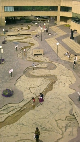 上の写真はメンフィスにあるのミシシッピー川の最上流から河口まで3780kmの流路の模型の一部。