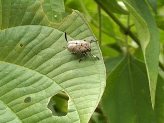 2004.08.25 タイ 赤カレン族の村 赤カレン族の村で撮影した昆虫の中で最も興味を引かれたものの一つ。ここまでにも名前がわからない、分類にも自信が持てないものが出てきたが、これは表情を見る限りセミの仲間に間違いないと思われるが、図鑑で調べる限り日本の昆虫には同種の掲載はない。セミの分化の過程で迷路に入り込んだのか、へんてこな虫である。尻尾のように飛び出したものは何なのだろう。こんな部品を持った虫は見たことがない。前後左右自在に動き回るのはセミらしいが。