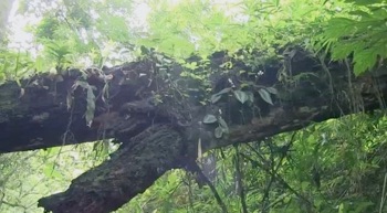 2013.08 HHL 村の水田地域に出る直前の大きな倒木の朽ちかけた幹にへばりついていた。倒木は頭上2m程の高さで、道路と川を跨いで向こう側の斜面にまで橋を架けたように横たわって、ベゴニアだけではなく、多くの植物をまとっていた。