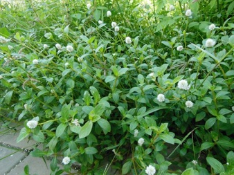 BMK東の仏教寺院の下の草むら。小中学校の校庭や脇道にも生えていた。