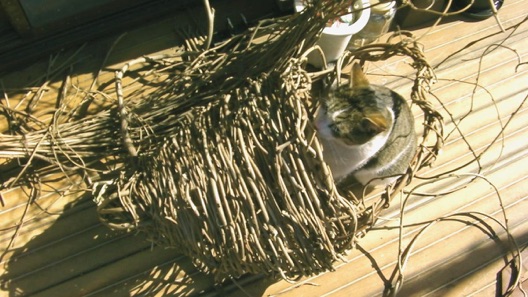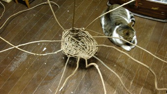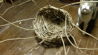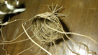 これのどこに芸があるか問われると困るが、1年かけて伸びた藤の蔓を何か籠のように編み上げて行く過程で感じる、古代から受け継いでいる自然との一体感に支配されていると、勝手に籠が出来上がってくる。