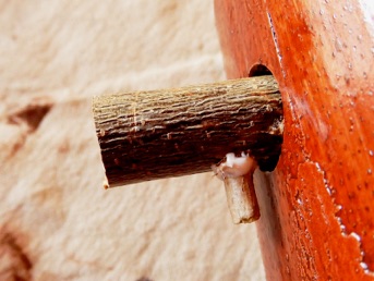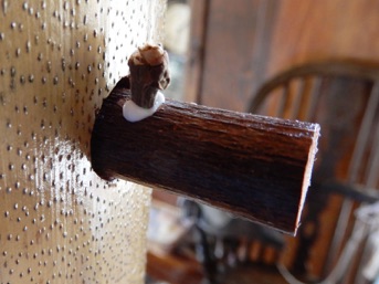 12月26日の作業の後、ひび割れ箇所を木工用パテを使って可能な範囲で内外両面から補修。パテが生乾きの状態で余分を削り取り、更にペーパーをかけている。