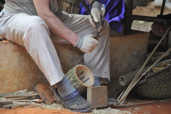 ※HHLは電気がない村。工作は全て手動の工具で工夫しながら行う。自分の子供時代に戻って村の竹に試行錯誤を加えた