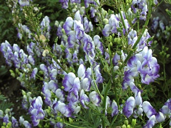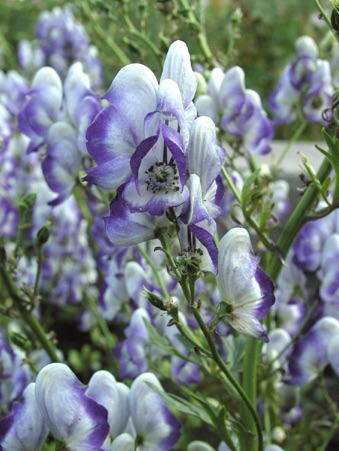 中国原産のトリカブトを品種改良した園芸種が多く出回っているが、これもそれらの内の一つなのか。当方が見たり撮影して来た自然のままのものとは全く異なる?色彩である。園芸品種といえども毒性を失っているわけではないことをわかって植えているのかちょっと心配した。