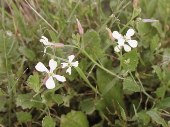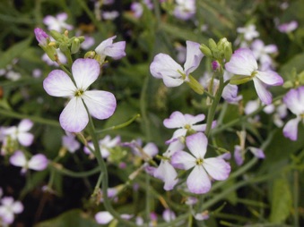 エクセターのホテル近くの公園の一隅で咲いていた。下段のガイコツ山のダイコンと比べると花びらが細く見えるが、ダイコンの花は午前中は花びらも勢いよく開いているが午後には少し萎れてほっそりしてしまい翌日は萎んで見る影もなくなる。つまり花の開き加減は撮影した時間の違い。