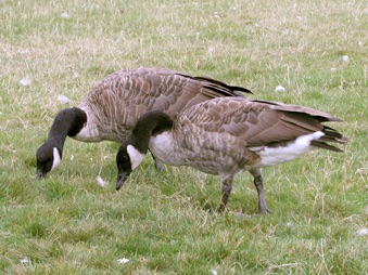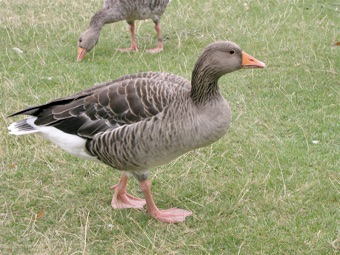 こちらはハイイロガン。イギリスではGreylag Goose。オス、メスとも同じ模様。カナダグースに比べるとこちらの方が少し小さいが、そう大きな違いはない。