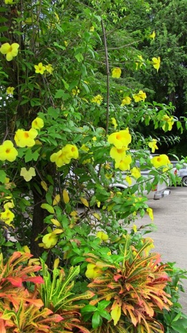 2010.08.17 チェンライ市内ホテル庭。 チェンライのホテルの植え込みに仕立てられ、丁度その開花の盛りに行き合わせたようだ。当方の田舎の年寄りは挨拶に行って顔を見せるということを「生き会う」という言葉で表現する。ここではあまり関係ないか。