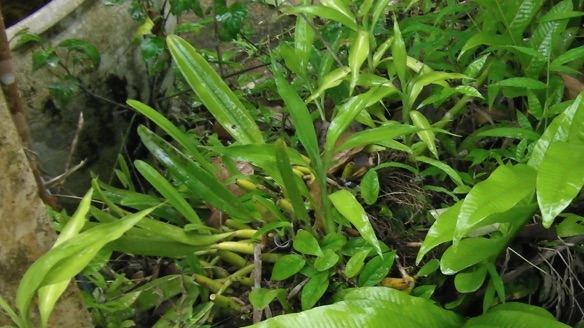 村の寺の前庭の入り口近くにカザリシダが地生していたのでカメラを向けたところラン科の植物のバルブが見つかった。自宅のランではセロジネやマキシラリアに似ているがそれらはバルブにしわがあるので少し異なる。以前育てていたものを思い浮かべバルボフィラムのバルブに似ていることからこれを一時的にバルボフィラムとした。