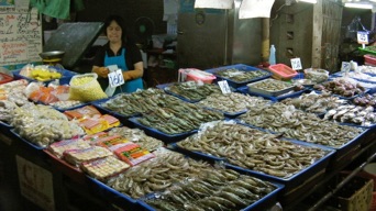場内は----どこの市場もあまり変わらない。30年程昔の元気だった頃の日本の全国各地にあった”銀座通り”の雰囲気とでも言えよう。このような昔懐かしい気分で場内を歩くと面白い。