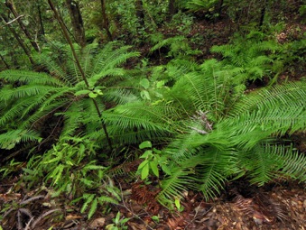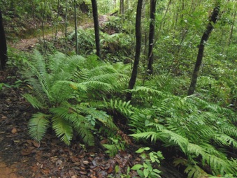 2013.03.09 HHL村滞在最終盤に尾根の山火事防火用防火帯の清掃作業を撮影していた時に根茎の中心部(茶色に見えるところ)の色や形が着生シダのものと似ていたので気になって撮影した。2013年のメニューページにはヒリュウシダと記載しておきながら、ジャンプした先はキジノオシダと統一を欠くのは、過去の記録に近いものを探した時、この2010年のキジノオシダに行着き、当面この判断従うつもり。