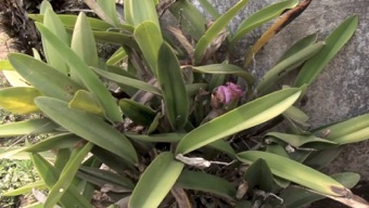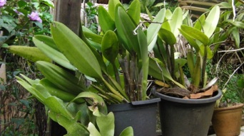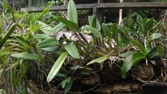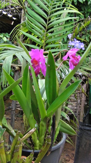 HHL、ホエヒンラートナイ村での滞在はいつも同じお宅にお世話になっている。その家の栽培棚にこのカトレアやバンダ他があって滞在する度に撮影している。2010年8月は開花の様子を撮影できたが、今回10月は開花株は見当たらなかった。上の黒い鉢と比べると、今回の方が明かにバルブ(茎)の数が多いのがわかる。きっとHHLの環境に上手く適合したのだろう。
