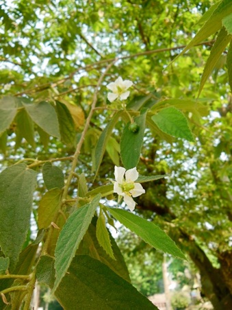 ナンヨウザクラの花とサクランボ。日本の山桜やソメイヨシノに結実した実を食べた事があるが、苦いだけで美味いと思った事はなかった。それに対して、ナンヨウザクラのサクランボにはしっかりした、しかも上品な?甘さがあり、BMKを訪問されたチェンマイ総領事館のガイドをお務めの方から、果実として充分商品になるというお墨付きをいただいた。