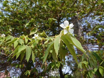 この花は市内の外れの果物屋台のすぐ近くで、良く果樹園で見られるような棚状にしつらえられた樹木の花である。