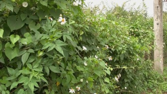 最上段の写真に写っている紫色はモミジバアサガオである。