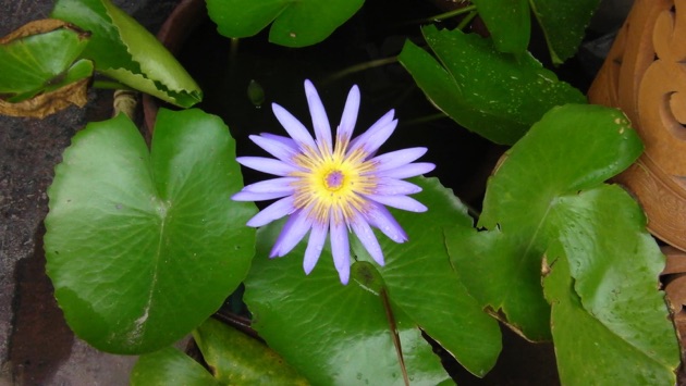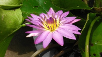 2010.08.17 チェンライ 市内 市場の近くの商店の店先にスイレン鉢が置かれていて、その中で1輪だけ、それでもなんとも言いようがない凛とした表情で咲いていた。