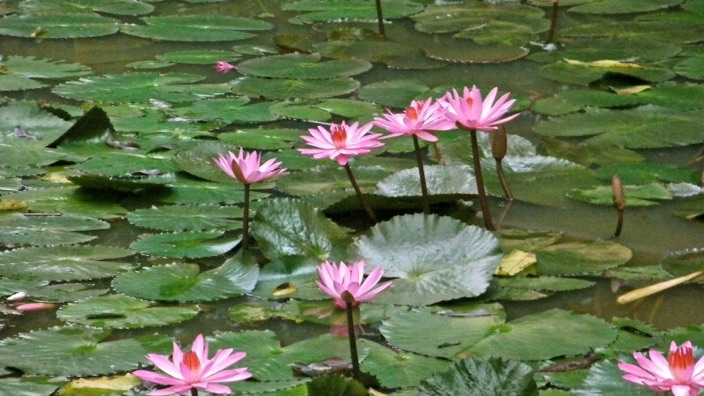 2014年3月 タイ、チェンライ郊外 ライMFL芸術植物園の池に植栽されていたスイレン。動画は撮影したが静止画を撮影していない。