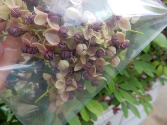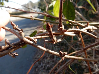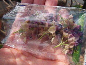 例年通り、ガイコツ山からアケビの雄しべを採取して我が家のアケビに受粉させたが、念を入れ、近所に五つ葉アケビを育てている家があり、そこから雄しべをいただいて我が家のミツバアケビに追受粉させた。ほとんど意味がないのはわかっているのだが、沢山実を着けろよという欲の現れ。