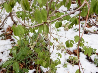 ガイコツ山にはこの五つ葉が自生しているが花は見て、受粉に利用もしているが、ここで結実しているのは見たことがない。