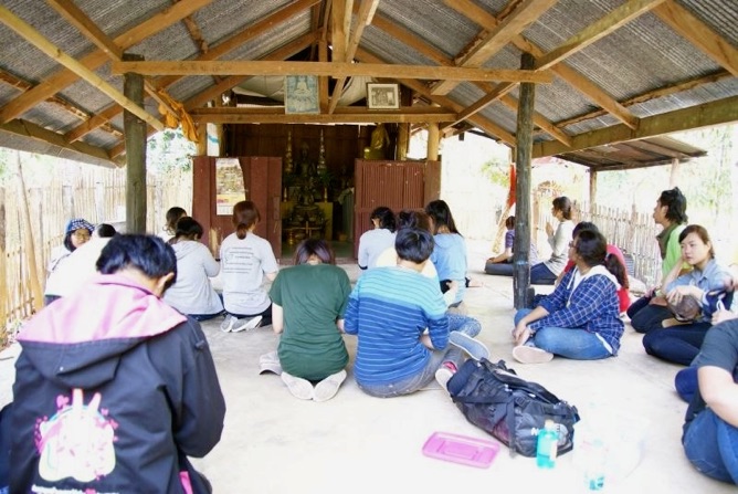 25.仏像に合掌タイ学生