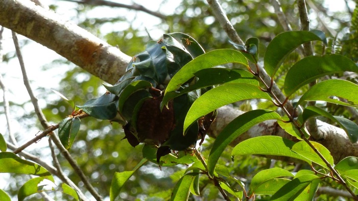 このアリの巣はプーカオクワイ自然保護区の森をしばらく進んだところにある湿地の小潅木の枝に付いているのをクアントン氏が見つけ撮影したもの。
