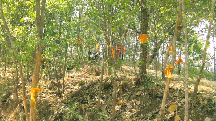 2010年の取材は8月、雨季もそろそろ終わり頃だった。今回は乾季の終わりで、丁度正反対の季節になるので、たくさんの昆虫との出会いを期待して行ったのだが、ちょっと期待はずれ。ただ、村のあちこちの木に着生しているデンドロビウム系のランが開花の時期を迎えていた。
