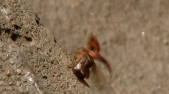 2014.09 帰国の前日、チェンライ市内の自然の撮影時、コック川の橋の下で見つけた。上に挙げているように、チェンライ市内で何度もテントウムシを撮影してきたが、それらは日本のテントウムシの半分もないくらいの小さな個体ばかりであった。今回撮影したものは映像から伝わるか疑問であるが、日本で見られる種でいえばカメノコテントウくらいの大きなタイプの個体であった。カメノコテントウとの共通項はドイツ軍のヘルメットのように甲殻の縁が外に開いているところ。これまで市内で観察した小さなタイプはどちらかというと星紋よりダンダラ系の模様が多かったが、これは見てわかるように明瞭な星紋。ラッキーな出会いだった。