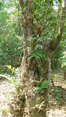 2012.03.28 村のお寺の奥の山、尾根筋の明るい樹木にたくさん着生していた。