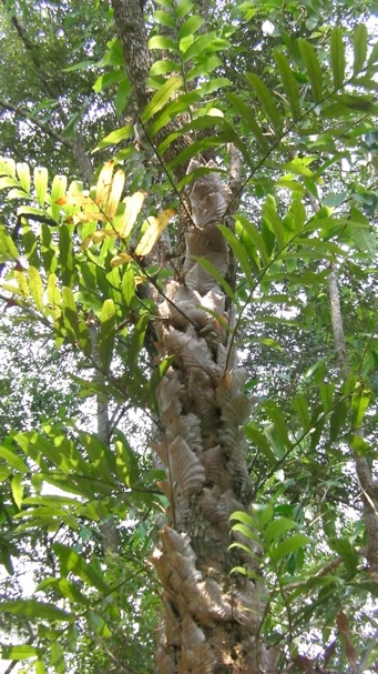 このシダと前出のカザリシダ、また沖縄で撮影したオキナワウラボシや自宅で育てていたダイオウウラボシ、これらはなかなか同定の決め手が見つからない。自宅のダイオウウラボシは枯らしてしまったし、それ以外は写真やビデオの映像しかないから手に取って比較できないのだ。やはり標本にするしかないのか。専門家に見てもらうということはつまり、標本がないとならないのだ。