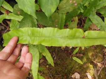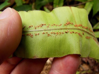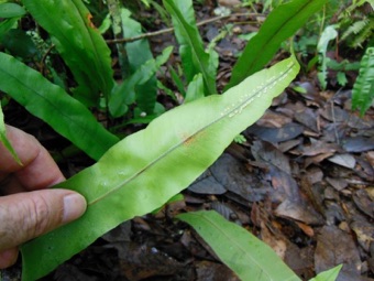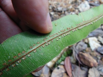 こちらもAタイプとほぼ隣り合わせの場所に生えていたシダである。このBタイプとしたものの胞子嚢は葉の先端の方にしかついていない。まだ成熟していないからなのか種が異なるからなのか未定。