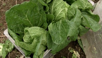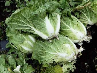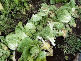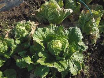 種蒔が遅かったため成長が遅くハクサイの特徴である玉ができなかった。その分葉に光が当たって葉野菜として充分楽しめた。