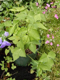 調理に使った後の根の部分を捨てずに、1時流しの傍で水耕栽培のように放っておくと根の部分から新芽が出てくることがあり、発芽した根株をプランターに植えておくとこのように一人前のミツバに育つこともある。こうなればその都度必要なだけ収穫して楽しむことができる。