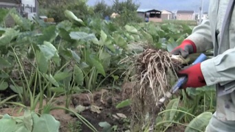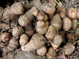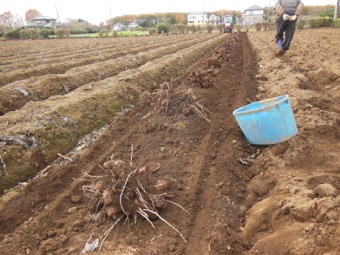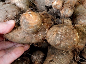 左の箱は親芋。普通は右の箱の子芋の方が店頭や食卓に並ぶが、親芋の方もおいしい。