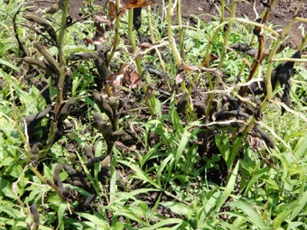 これは来年の種用に取り残したもの。なかの豆を取り出して見たが固くはなっているが、まだ緑色の部分を保っていた。その状態になった豆でも、普通の煮豆と同じように調理すれば美味しく食べられるということだ。