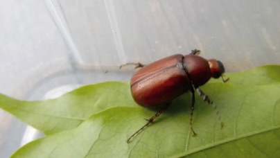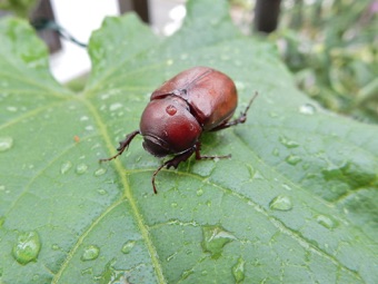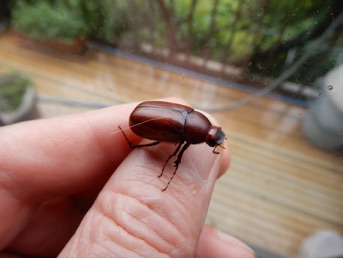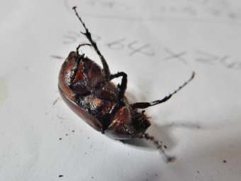 このクリイロコガネもプランターの土をかき混ぜていて出てきたもののよう。これまで自宅やガイコツ山で見ていなかった種が急に発現するというのは、プランターに継ぎ足した用土の中に卵か蛹が混入していた可能性が高い。気をつけなくては。