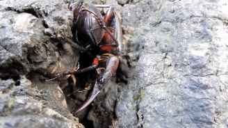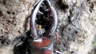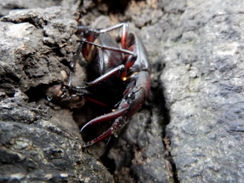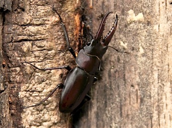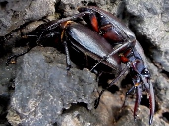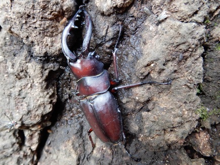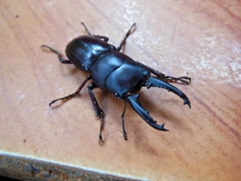 体が中程度だからなのだろうか、顎がほとんど湾曲せずまっすぐ前にのびている。海外の種との交雑なのかと疑ってネット上の資料を見てみると、体の大きさによって顎の大きさ・湾曲の形も変わるということ、中・小の個体の写真に今回撮影したものとそっくりな顎があり、なるほどと頷いた次第。知らないということは楽しい。